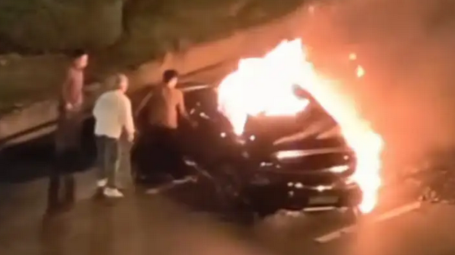 目撃者の証言によりますと、衝突直後に車両が発火し、彼はほかの数名とともに救助に駆け寄りましたが、ドアは開かなかったといいます。その後、車の底部から爆発音が響き、バッテリーの爆発とみられる音を聞いたため、やむなく後退したとのことです。消防が駆けつけて消火にあたりましたが、火勢が収まった時には車体は完全に焼け落ち、原形をとどめていませんでした。